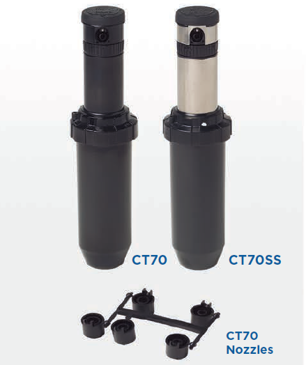 Vòi tưới xoay Rotor CT70 thích hợp lắp đặt tại những vị trí có bán kính phun lớn như Sân Gofl, Công Viên, Resort Vòi tưới CT70S bằng Inox