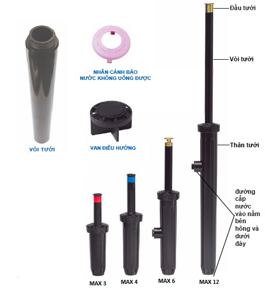 • Thân tưới LX6 và LX12 có đường cấp nước vào nằm bên hông và dưới đáy*